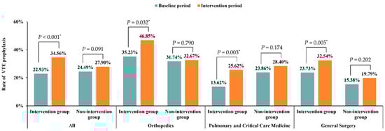 Improvement of VTE prophylaxis in different departments. * p < 0.05.