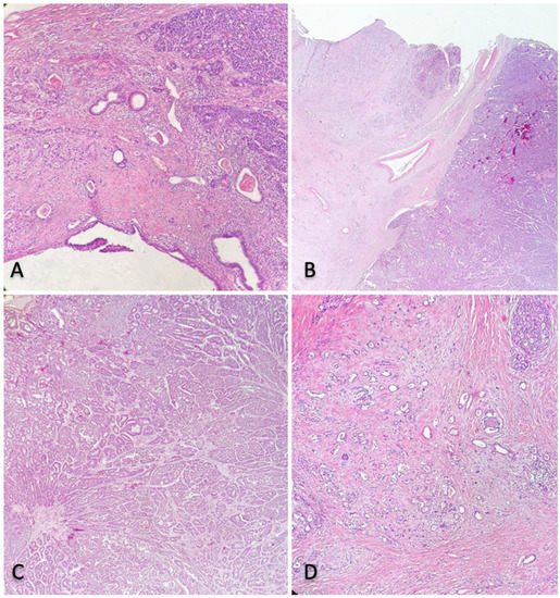 - Ahmad, Z.; Mumtaz, S.; Fatima, S.; Qureshi, A. Mixed ductal-endocrine carcinoma of pancreas. BMJ Case Rep. 2011, 2011, bcr0220113861. [Google Scholar] [CrossRef] [PubMed]