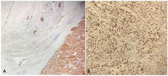 Recently, La Rosa et al. created a classification of MiNENs according to their grade of malignancies [2,20]. High-grade MiNEN typically are the most frequent, being composed by a non-neuroendocrine carcinoma or adenoma and NEC. In such cases, the NEC component is the most aggressive one, as occurred in our case where a MiNEN comprising NEC and high-grade ductal adenocarcinoma was found. Intermediate-grade MiNEN usually combines a non-neuroendocrine carcinoma with a well-differentiated NET, and in this case, the prognosis often depends on the non-neuroendocrine component, whereas G3 is a negative prognostic factor. Finally, low-grade MiNEN combines an adenoma with a well-differentiated NET [2,22].