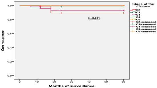 The frequency of recurrence was statistically significantly influenced by the CVD stage (p < 0.001).