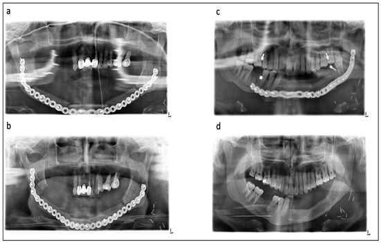 The study had several limitations. First of all, its retrospective nature posed the risk of incomplete data and bias in data documentation and the statistical analysis. A major drawback regarding radiological evaluation was the lack of a 3D evaluation of ossification. The use of a multislice CT scan or a cone-beam CT may have provided more precise data. In clinical routine, however, plain panoramic radiographs were sufficient for most questions of ossification or hardware failure. At our institution, 3D scans were reserved for tumor follow-up or specific bone diagnostics during recent years. Finally, the used reconstruction plates occasionally covered the gaps, sometimes hindering evaluation.