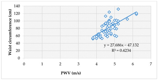 Moreover, the waist circumference showed an even more significant positive correlation to PWV values when assessing all children (ρ = 0.62, p < 0.0001), Figure 2.
