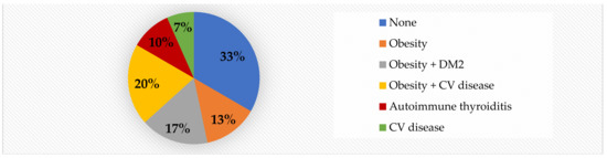 Secondary obesity causes: Cushing syndrome, clinical hypothyroidism of any etiology, type 2 DM, polycystic ovarian syndrome, hypothalamic injury/disorders, genetic syndromes such as Prader–Willi syndrome, ghrelin–leptin dysfunction, and use of medication that can induce weight gain (glucocorticosteroids, sulphonylureas, tricyclic antidepressants, antipsychotics) [4].