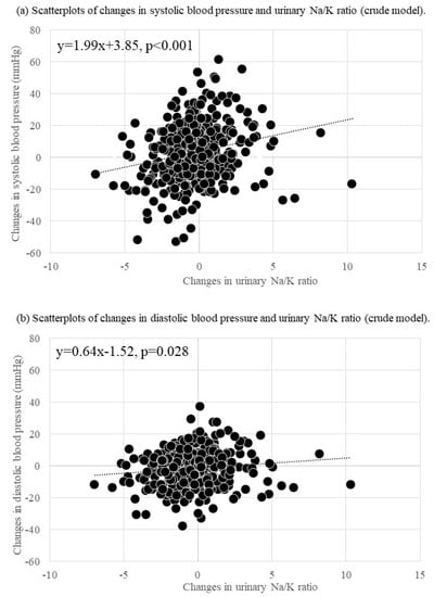 3.3. Association between Changes in The Urinary Na/K Ratio and BP Resulting from The Use of Antihypertensive Medication