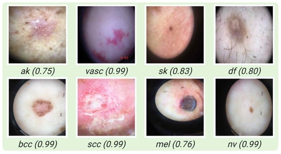 - Tschandl, P.; Codella, N.; Akay, B.N.; Argenziano, G.; Braun, R.P.; Cabo, H.; Gutman, D.; Halpern, A.; Helba, B.; Hofmann-Wellenhof, R.; et al. Comparison of the accuracy of human readers versus machine-learning algorithms for pigmented skin lesion classification: An open, web-based, international, diagnostic study. Lancet Oncol. 2019, 20, 938–947. [Google Scholar] [CrossRef]