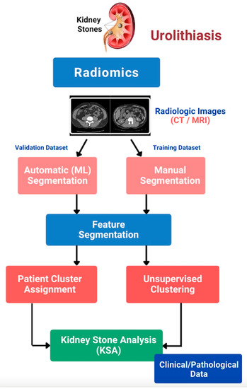 - Zheng, J.; Yu, H.; Batur, J.; Shi, Z.; Tuerxun, A.; Abulajiang, A.; Lu, S.; Kong, J.; Huang, L.; Wu, S.; et al. A multicenter study to develop a non-invasive radiomic model to identify urinary infection stone in vivo using machine-learning. Kidney Int. 2021, 100, 870–880. [Google Scholar] [CrossRef]