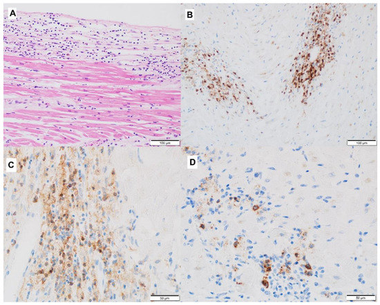 - Aretz, H.T.; Billingham, M.E.; Edwards, W.D.; Factor, S.M.; Fallon, J.; Fenoglio, J.J.; Olsen, E.G.; Schoen, F.J. Myocarditis. A histopathologic definition and classification. Am. J. Cardiovasc. Pathol. 1987, 1, 3–14. [Google Scholar]
