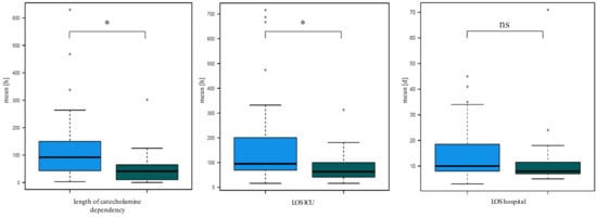 As a surrogate for morbidity, we selected the duration of intensive care therapy and the hospital length of stay. ICU treatment and length of hospital stay were both significantly reduced in OTE patients compared to DET children which is in line with Varghese et al. []. For a more detailed consideration of intensive therapy, we focused on the amount and duration of cathecholamine therapy using the VIS score []. Patients in the OTE group showed significantly lower VIS scores as well as a shorter duration of catecholamine therapy, indicative of a more stable cardiovascular situation.