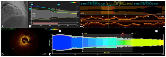 OCT and IVUS are the most widely used intracoronary imaging systems. OCT provides more information for decision-making regarding coronary revascularization [8]. Thus, it is important to obtain information on its potential to identify coronary functional stenosis severity. Previous research focused on the intermediate angiographic severity lesions, but only a moderate value was declared [12,13,22]. The present study evaluated the diagnostic efficiency of OCT parameters in identifying hemodynamically severe coronary stenosis, as determined by the OFR/QFR concordance with vessels with a single stenosis.