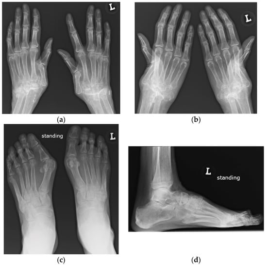 - Sudoł-Szopińska, I.; Teh, J.; Cotten, A. Rheumatoid Hand and Other Hand-deforming Rheumatic Conditions. Semin. Musculoskelet. Radiol. 2021, 25, 232–245. [Google Scholar] [CrossRef]