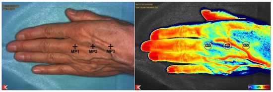 The aim of the present study was to measure the changes in blood flow to the hand in the context of ischemia and reperfusion after application of a tourniquet. Near-infrared imaging (NIRI) and thermographic imaging were used to measure the changes in temperature and tissue oxygen saturation. These imaging modalities are already used in reconstructive plastic surgery and in the context of solid organ transplantation [9,10,11,12]. NIRI has been described in plastic surgery to monitor free flaps postoperatively by measuring tissue oxygen saturation [13]. Thermographic imaging has already been investigated in the context of assessing the perfusion of random pattern flaps or mastectomy skin flaps and in the context of wound healing [14,15,16].