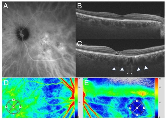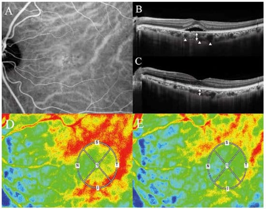 - Imamura, Y.; Fujiwara, T.; Margolis, R.; Spaide, R.F. Enhanced depth imaging optical coherence tomography of the choroid in central serous chorioretinopathy. Retina 2009, 29, 1469–1473. [Google Scholar] [CrossRef]