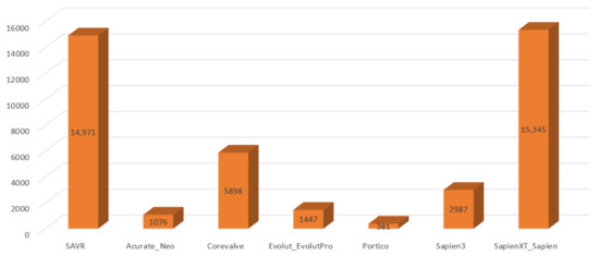 Representativeness of SAVR and various TAVI valves in the included studies. SAVR: surgical aortic valve replacement, TAVI: transcatheter aortic valve implantation.