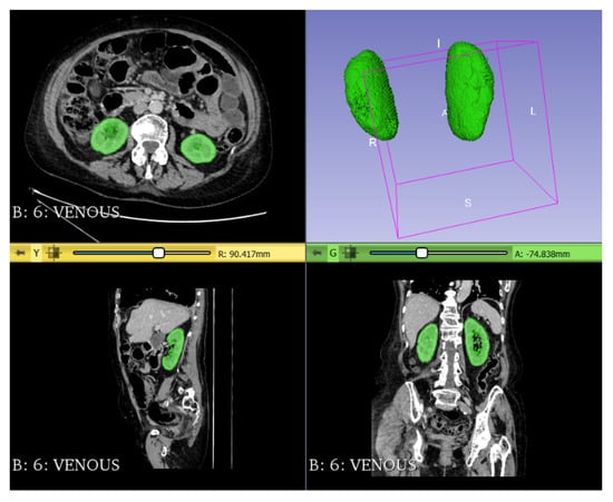 Kidneys were segmented semi-automatically and bilateral renal volume was normalized for the patient’s height (Figure 4). All artifacts, kidney vessels, renal calyces and pelvises, and renal cysts were manually excluded from the volume calculations.