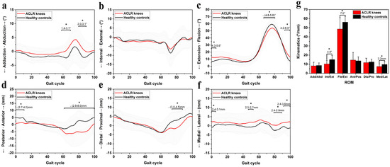 - Gao, B.; Zheng, N. Alterations in three-dimensional joint kinematics of anterior cruciate ligament-deficient and -reconstructed knees during walking. Clin. Biomech. 2010, 25, 222–229. [Google Scholar] [CrossRef] [PubMed]