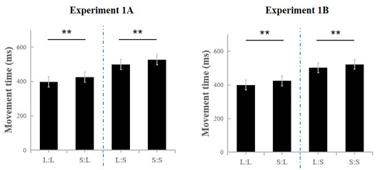- Tang, R.; Shen, B.; Sang, Z.; Song, A.; Goodale, M.A. Fitts’ Law is modulated by movement history. Psychon. Bull. Rev. 2018, 25, 1833–1839. [Google Scholar] [CrossRef]