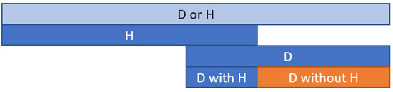 Figure 2. The death calculation method diagram without hospitalization (D without H) is based on the composite endpoint death or hospitalization (D or H). D—death; H—hospitalization.- Death from CV causes without hospital admission for HF/worsening HF;