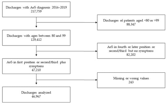 The perspective of this study is to obtain information about AoS in the hospitalized elderly population for better health planning that includes recognition of the differences between genders and age groups given the increasing old age of the patients admitted to Spanish hospitals [].