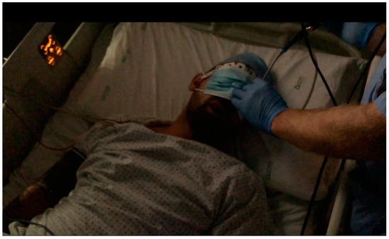 After the evaluation of the upper airways in the supine position of 0°, for each patient, the bedhead was inclined up to 30° to examine possible modifications of the upper airway obstructions and collapses (HOBE position—Figure 3).