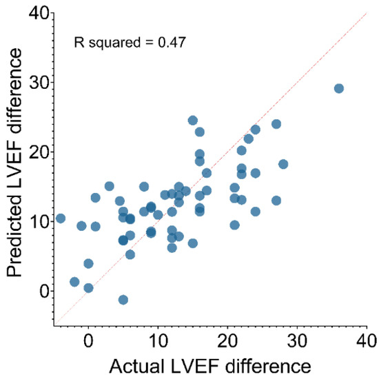 | LVEF % at baseline | −0.6426 | 0.1237 | <0.0001 | −0.6634 | 0.133 | <0.0001 |