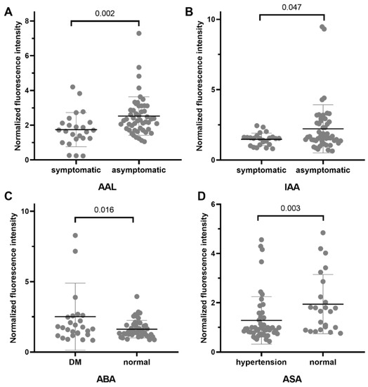 Chicago/Turabian StyleLi, Siting, Jingjing Meng, Fang Xu, Qian Wang, Xinping Tian, Mengtao Li, Xiaofeng Zeng, Chaojun Hu, and Yuehong Zheng. 2022. "IgG Glycosylation Profiling of Peripheral Artery Diseases with Lectin Microarray" Journal of Clinical Medicine 11, no. 19: 5727. https://doi.org/10.3390/jcm11195727