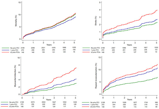 3.1. Outcome According to the Number of Prior PCIs