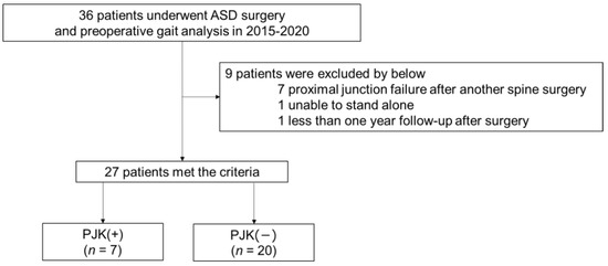 First, we included 36 patients with ASD who underwent gait analysis and corrective surgery. Nine patients met the exclusion criteria; therefore, 27 were eventually included in this analysis (Figure 3).
