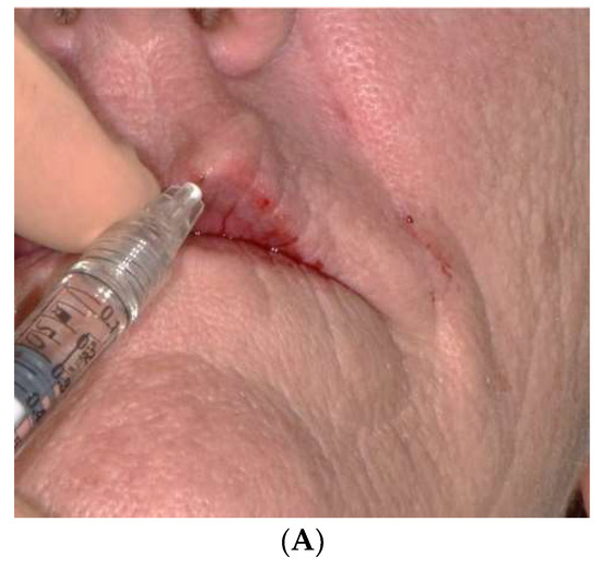 - Urdiales-Gálvez, F.; Martín-Sánchez, S.; Maíz-Jiménez, M.; Castellano-Miralla, A.; Lionetti-Leone, L. Concomitant Use of Hyaluronic Acid and Laser in Facial Rejuvenation. Aesthetic Plast. Surg. 2019, 43, 1061–1070. [Google Scholar] [CrossRef] [PubMed]