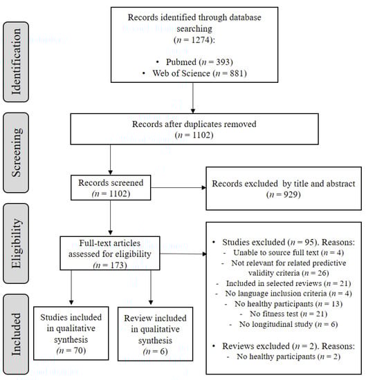 An initial search of the electronic databases Medical Literature Analysis and Retrieval System Online (MEDLINE, via PubMed) and Web of Science was performed from date of inception to November 2020, screening for predictive validity of motor fitness and flexibility tests in adults and older adults, using keyword search terms.