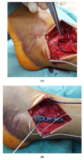 - Miller, A.N.; Carroll, E.A.; Parker, R.J.; Boraiah, S.; Helfet, D.L.; Lorich, D.G. Direct visualization for syndesmotic stabilization of ankle fractures. Foot Ankle Int. 2009, 30, 419–426. [Google Scholar] [CrossRef]