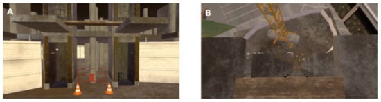 A multidisciplinary team of physicians and computer scientists co-designed an original exposition environment dedicated to the experimentation using the game engine Unity 3D 5.6. 0f3 (64-bit). The originality of this environment is its fully embodied and dynamic nature (a video of a first-person view is provided in Supplementary Material S1). The environment consisted of a 150 m skyscraper in construction with two elevators, with transparent doors leading to the top of the building.