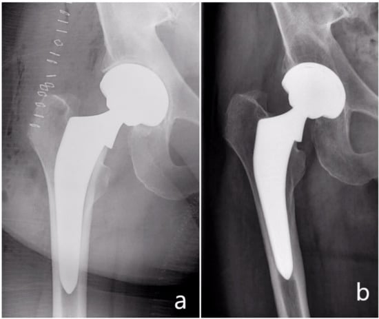 - Jacobs, C.A.; Christensen, C.P. Progressive subsidence of a tapered, proximally coated femoral stem in total hip arthroplasty. Int. Orthop. 2009, 33, 917–922. [Google Scholar] [CrossRef] [PubMed] [Green Version]