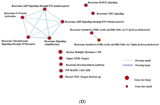 To gain a better understanding of the molecular events that led to aggressive behavior and sarcomatoid dedifferentiation, genes with differential falling outside of the inflection point were analyzed using the GSEA. Enrichment gene sets results were visualized by Cytoscape (https://cytoscape.org/, accessed on 21 August 2021). We selected late treatment cases to evaluate the molecular and gene pathways involved in the changes [16,17].