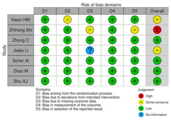 Risk of bias plot of RCTs included in this SR (RoB2).