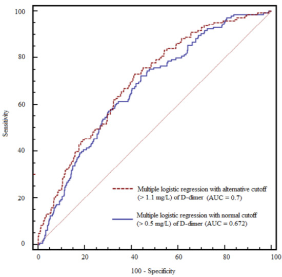 3.4. Analysis Using the Alternative D-Dimer Cutoff Level