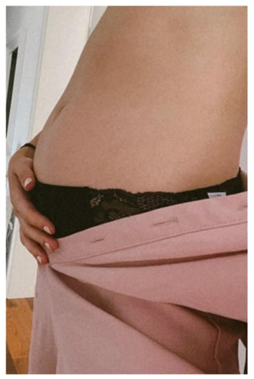 It is interesting to note that an ever-increasing role is attributed to the patients’ diet when it comes to the development and progression of endometriosis. More and more patients observe that their unspecific intestinal complaints, which they themselves have never considered to be a “gynecological problem”, follow a cyclical pattern. This phenomenon is known as “endo belly”, which means that the patients’ belly is severely bloated (Figure 3). This causes not only pain and feeling unwell, but it is also accompanied by functional bowel emptying disorders (constipation/diarrhea), food intolerances and pain before defecation. Unfortunately, the number of studies on evidence-based dietary recommendations is very limited [29]. Given the complexity of the disease, however, this is not surprising [27]. In general, patients show a benefit with a high-fiber diet with plenty of fruits and vegetables, and a reduced consumption of sugar and animal products are recommended [30]. One can find various recommendations for an “endometriosis diet” on the internet, which give the impression that the effect of a certain diet is proven (Endometriosevereingung Austria (EVA), Association for Endometriosis Austria). However, some of these recommendations are not based on empirical studies. In our experience, a vegan diet without industrial sugar and gluten often leads to a significant improvement in symptoms (unpublished data). Especially milk products and pork might be sources of inflammatory substances such as prostaglandins, so good-quality meat such as chicken (white meat) and fish might be ok occasionally. It is assumed that parts of the intestinal mucosa/wall are also subject to cyclical changes; the microbiome, but also chronic inflammation, may be involved in this. This phenomenon needs to be examined in further studies [31]. Currently, there are various approaches to build up and stabilize the intestinal flora with probiotics. It is generally known that a pro-inflammatory environment gives rise to free radicals and leads to oxidative stress. Thus, an anti-inflammatory diet could be useful. A prospective study has shown, for example, that the intake of fish oil (omega-3 unsaturated fatty acids) reduced the risk of EM recurrences [32]. The ratio of unsaturated fatty acids to saturated fatty acids was important in this context [32]. Vitamin C, E and A, selenium and zinc also have an antioxidant effect. In addition to its anti-inflammatory effect, vitamin D is also said to have an antiproliferative and immunomodulatory effect, and in one study even caused a reduction in pain [33,34,35], probably due to a reduced histamine release. Several compositions of anti-inflammatory substances are already freely available for the supportive therapy of endometriosis.