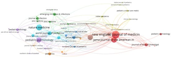 Top productive and cited journals that include publication related to clinical and laboratory characteristics of pediatric COVID-19 cases are presented in Table 2 and Figure 4. These journals focus on research areas such as general and internal medicine, biochemistry and molecular biology, cell biology, research and experimental medicine, infectious diseases, pediatrics, immunology, the respiratory system, and virology.