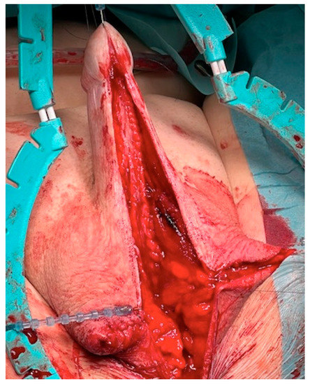 Complete panurethral defects of the urethra normally require a two-staged process. This is one out of the three important principles for successfully performing surgery in complex panurethral strictures besides loose, tension-free transplantation of skin flaps and usage of hairless skin. Using a free buccal mucosa graft in these situations entails some limitations and dangers, even when performed in two stages. To successfully transplant buccal mucosa in these patients, a healthy and well-vascularized urethral plate has to be formed. This is usually reached with a fascia dartos flap []. After a successful reconstruction of the neourethra out of BM, there is still the risk of developing a penile curvature while healing because of the fibrotic remodeling of the urethral plate if the graft bed is not adequate [].