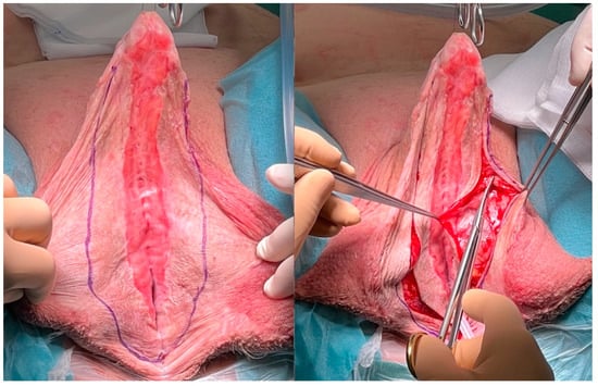 For the first step, the transplant is incised longitudinally in an appropriate distance to the original urethral plate to ensure a sufficient wide neourethra after closing (Figure 8). At the proximal and distal endings of the original urethral plate, the incision should be performed closer to the urethra, so that there would not be a urethral diverticulum after closing it.