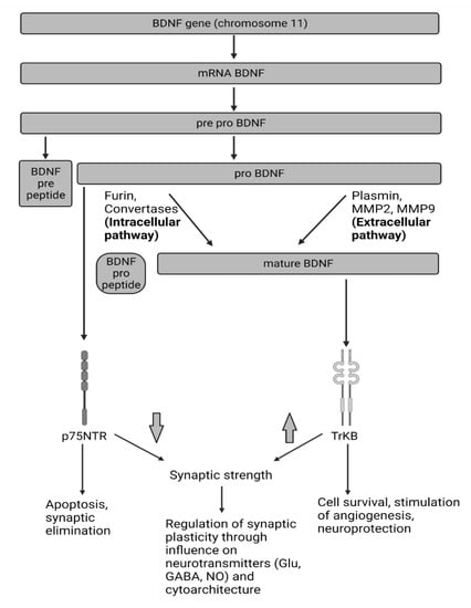 - Kowiański, P.; Lietzau, G.; Czuba, E.; Waśkow, M.; Steliga, A.; Moryś, J. BDNF: A Key Factor with Multipotent Impact on Brain Signaling and Synaptic Plasticity. Cell. Mol. Neurobiol. 2018, 38, 579–593. [Google Scholar] [CrossRef] [PubMed]