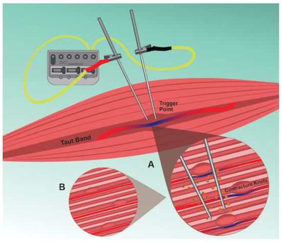 - Hadizadeh, M.; Rahimi, A.; Javaherian, M.; Velayati, M.; Dommerholt, J. The efficacy of intramuscular electrical stimulation in the management of patients with myofascial pain syndrome: A systematic review. Chiropr. Man. Therap. 2021, 29, 40. [Google Scholar] [CrossRef]