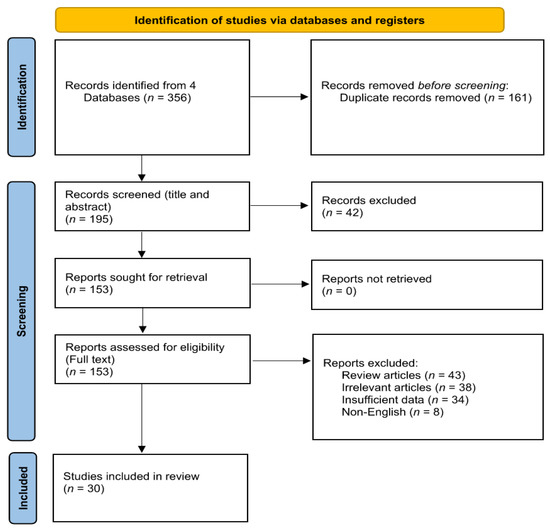 Among 356 published studies identified by a systematic databases search, 173 were directly related to the topic of this study. In total, 143 studies were excluded after careful evaluation (43 studies were reviews, 38 studies were excluded because they did not match the inclusion criteria, 34 studies did not report sufficient data, and 8 were non-English papers). Therefore, 30 studies which evaluated IMT after bariatric surgery were included (Table 1). Figure 1 shows the process of study selection.