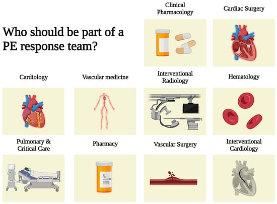 - Dudzinski, D.M.; Piazza, G. Multidisciplinary Pulmonary Embolism Response Teams. Circulation 2016, 133, 98–103. [Google Scholar] [CrossRef]