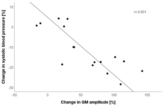 Lastly, we correlated changes in pooled GM and BF tensiomyographic parameters with changes in SBP and found a high correlation between GM Dm with SBP (r = −0.801; p < 0.001; Figure 3).