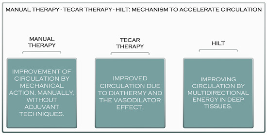 The acceleration mechanism of manual therapy, TECAR therapy, and HILT.
