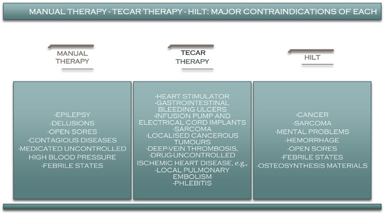 9. Manual Therapy–TECAR–HILT Therapy: Contraindications