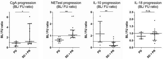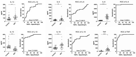 3.2. Serum Levels of IL-1β, IL-6, IL-8, IL-10, IL-18, and TNF Are Altered in Patients with Neuroendocrine Tumors