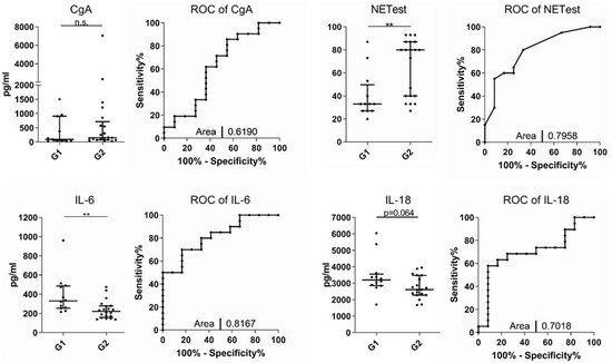 3.3. NETest and IL-6 Levels Can Discriminate between G1 and G2 NET