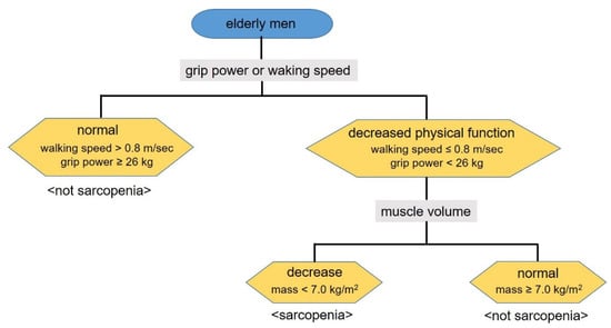 - Yamada, M.; Nishiguchi, S.; Fukutani, N.; Tanigawa, T.; Yukutake, T.; Kayama, H.; Aoyama, T.; Arai, H. Prevalence of sarcopenia in community-dwelling Japanese older adults. J. Am. Med. Dir. Assoc. 2013, 14, 911–915. [Google Scholar] [CrossRef]