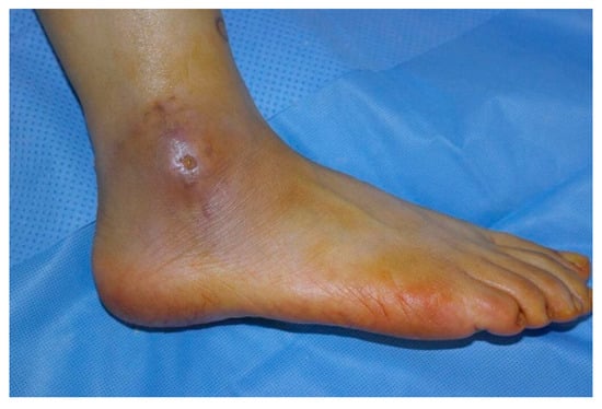 - Lee, W.C.; Kim, J.H.; Song, J.K.; Moon, J.S. Fistula of the ankle: A complication of ankle sprain. J. Korean Foot Ankle Soc. 2002, 6, 261–264. [Google Scholar]